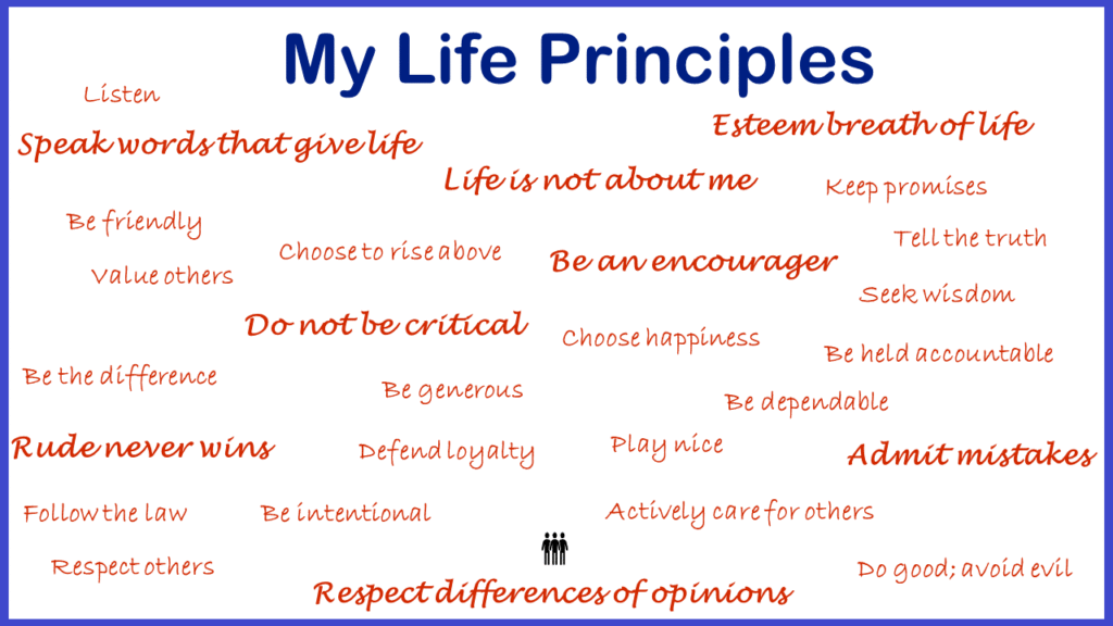 Every time I speak about ethics, I include one particular slide—a simple image titled “My Life Principles.”